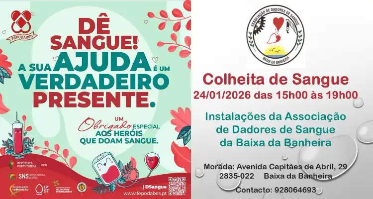 A União de Freguesias da Baixa da Banheira e Vale da Amoreira e a Associação de Dadores de Sangue da Baixa da Banheira apelam à solidariedade de todos os fregueses para a importância da dádiva de sangue, um gesto simples que pode salvar vidas.
